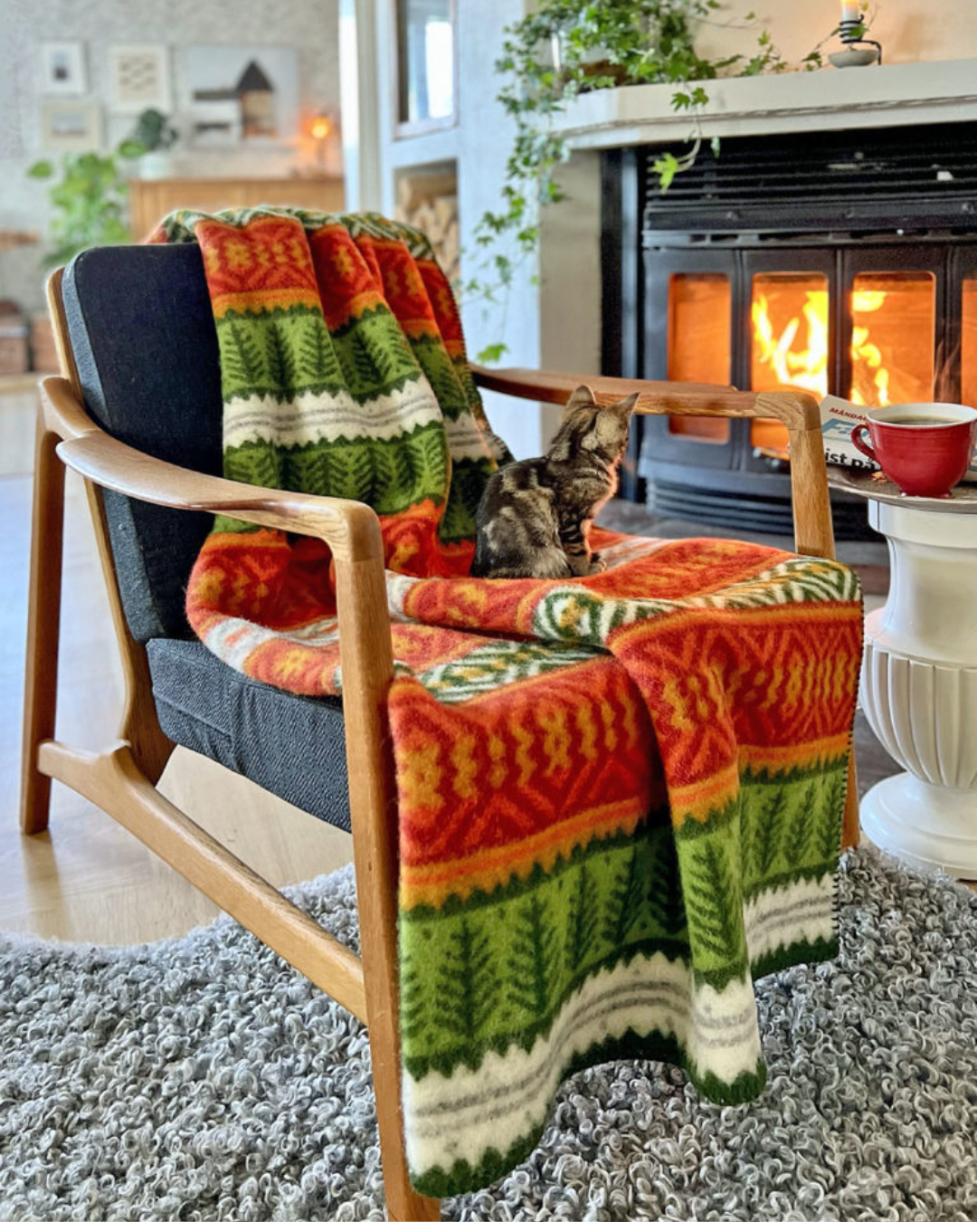 Filten är designad av Kerstin Landström och vävd i mjuk och värmande lammull.